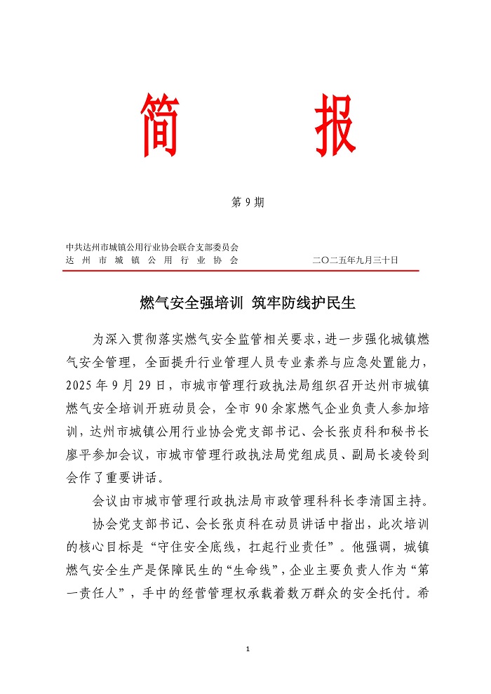 達(dá)州市城鎮(zhèn)公用行業(yè)協(xié)會(huì)2025年第九期簡(jiǎn)